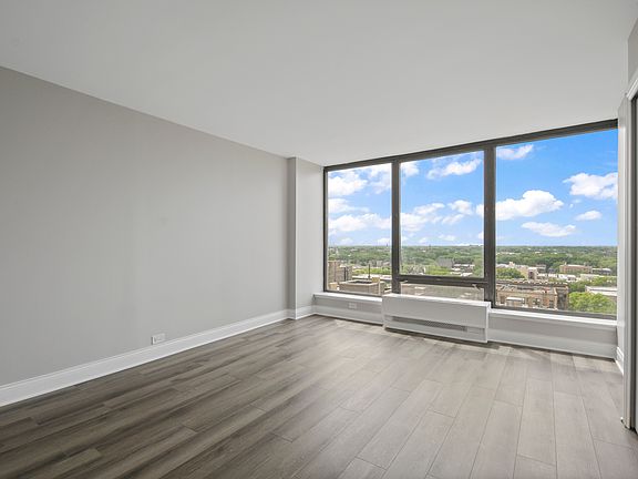 Renovated 2 bedroom, 2 full bathroom apartment for rent in Edgewater Plaza. Stunning city views throughout this 15th floor corner unit. Unit has an open floor plan with a large living room area, separate dining room area, 2 bedrooms with Master bathroom. Vinyl flooring throughout. Kitchen features white cabinets, with quartz countertops, stainless steel appliances. Bathrooms are completely remodeled with amazing finishes throughout. Sundeck on second floor, pool and fitness center in building next door for a monthly cost Heat and water included in rent
