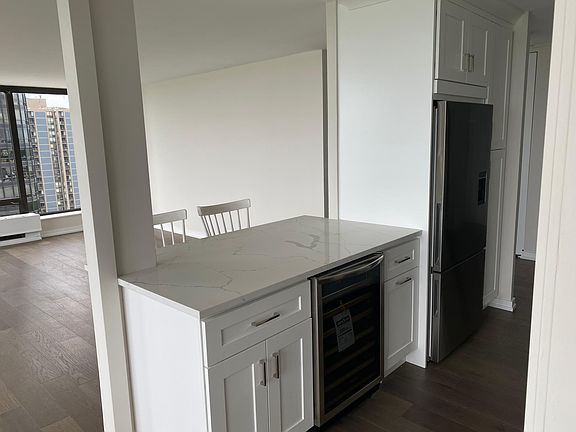 MUST SEE! Gorgeous renovated corner 2 bedroom/2 bathroom unit in Edgewater Plaza. Rarely available spacious east side unit offering dramatic lake, and city views from every room. New rustic hardwood flooring through out unit. Open kitchen with quartz countertops, white shaker cabinets, brand new appliances throughout, brand new wine cooler under island. Kitchen includes recessed lighting and modern backsplash. New designer bathrooms with porcelain tiles, new vanities, and rain shower heads. Large bedrooms with custom closets designed by closet works. Also includes new window treatment throughout the unit and redone light fixtures. Building includes 24 hour doorman, sun deck with tennis court/grills/playground, party room for entertaining, dry cleaning service on ground floor. Health club which includes indoor pool, jacuzzi, and gym available next door for a fee. Express bus to downtown stops outside building, walking distance to red line stops, Marianos grocery store, beaches, parks, and bike path. Ready for someone to call it home. Make your appointment to view it now before someone else will.