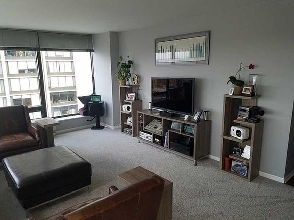 Beautiful 1 bed/1 bath corner unit with amazing views from floor-to-ceiling windows. New paint, new flooring, new Mohawk carpeting, new light fixtures. GE Profile appliances and stainless KitchenAid refrigerator. Adjacent to huge park, lakefront bike path, bus stops, and a 5-minute walk from 2 beautiful beaches. Short walk to 2 Red Line stops and Andersonville. 24-hour doorman and security. Heat/AC included.