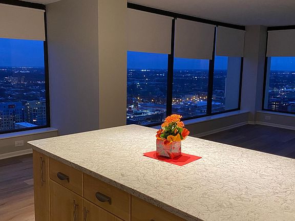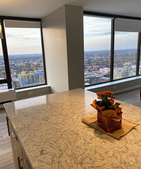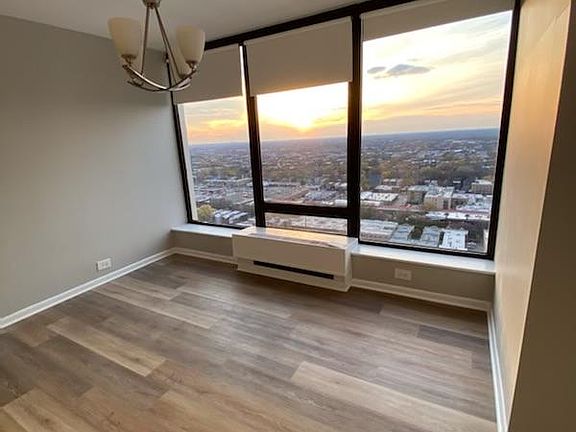 Come live in this meticulously rehabbed, stunning high floor corner apartment with floor to ceiling windows and endless sunset views! The open floor plan apartment features all new flooring, new bathrooms, new lighting, new kitchen countertops and tile backsplash, and new paint from top to bottom. Both bedrooms are incredibly spacious, and the primary with ensuite bathroom comfortably fits a king bed.nit. Full Amenity building w/ pool membership available, hot tub, tennis court, gym, grills, and sundecks, and a 24-hour doorman. Walk minutes to the lakefront path and beaches, red line trains, and all the amazing shops and restaurants in Edgewater. Heat, Water, Cable, INCLUDED. Only pay electric. Parking available in the building for an extra fee. There is a $150.00 processing fee charged by the building, a $200 REFUNDABLE elevator deposit to the building for move in (fully refunded if no damage) and a $400 non-refundable move in fee to the owner. Looking for minimum 650 credit score and 3x rent in income.