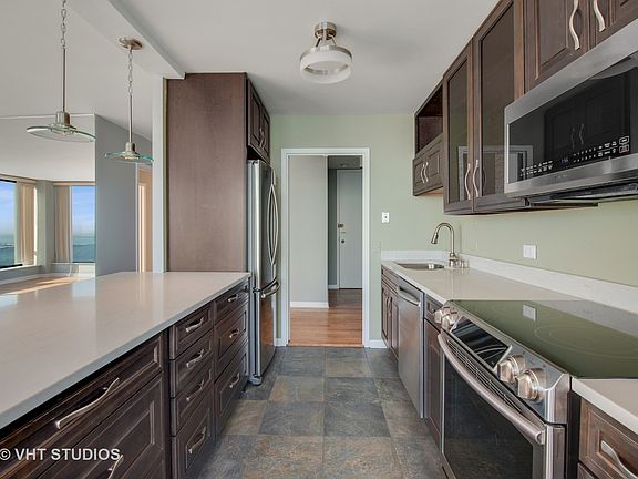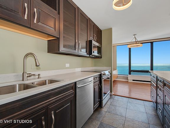 WOW! GORGEOUS, BRAND NEW completely renovated 36th FLOOR CORNER 3 bed 3 full bath residence in Edgewater Plaza! Sunny, spacious split floor plan with FLOOR TO CEILING WINDOWS offering DRAMATIC EAST & WEST FACING LAKE & CITY VIEWS including breathtaking SUNRISES & SUNSETS. Elegant HARDWOOD flooring throughout, open kitchen with GRANITE countertops & BREAKFAST BAR, STAINLESS APPLIANCES & tasteful lighting options. 3 LUXURIOUS BATHS featuring custom vanities, sinks, exquisite tile work walk in showers, whirlpool tub and tons of closet space. FULL AMENITY BUILDING includes sun deck, playset, tennis, grills, party room & dry cleaner/receiving room. Health club/Indoor Pool next door for small fee. RENT INCLUDES HEAT, A/C, CABLE TV & more! Parking available for $100. Sorry, NO PETS. Express bus at door. 2 blocks to Red Line. PARK, BEACH & BIKE PATH at back door, walk to Marianos's, Andersonville, shops, restaurants, theatres & everything dynamic Edgewater has to offer!