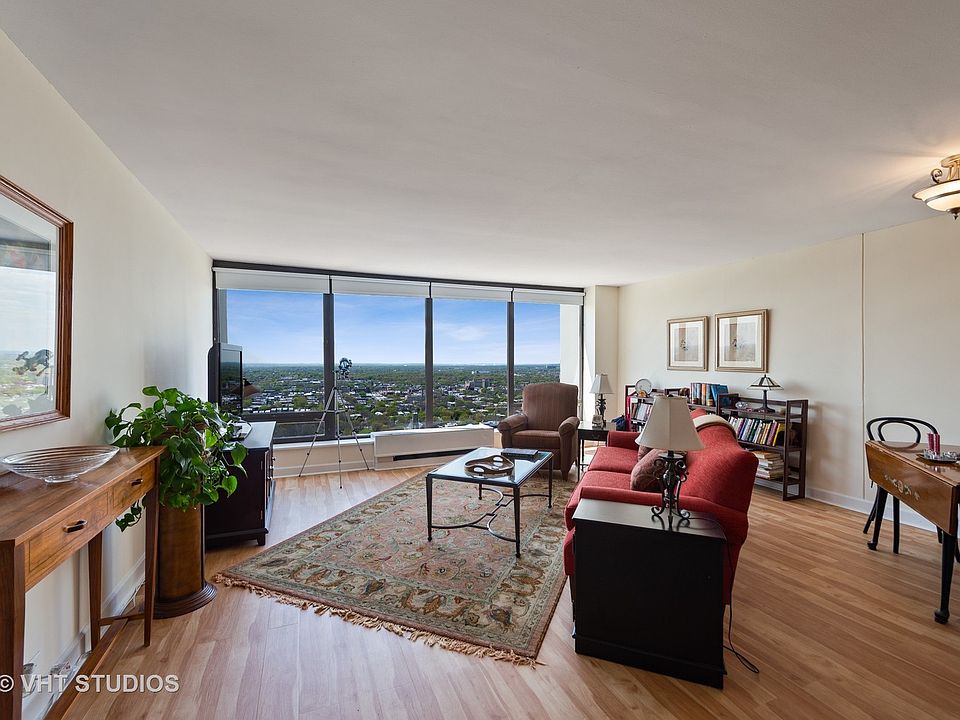 ** INVESTORS! ** GORGEOUS, completely renovated 37th FLOOR 1 bedroom residence in Edgewater Plaza! Sunny, spacious open floor plan with FLOOR TO CEILING WINDOWS offering DRAMATIC west facing CITY VIEWS & breathtaking SUNSETS. HARDWOOD FLOORING throughout, open kitchen with GRANITE countertops & BREAKFAST BAR, STAINLESS APPLIANCES, tastefully REDONE BATH & tons of CUSTOM CLOSET space. FULL AMENITY BUILDING includes sun deck, playset, tennis, grills, party room & dry cleaner/receiving room. Pool & health club next door for small fee. LOW TAXES! LOW ASSESSMENTS INCLUDE HEAT, A/C, CABLE TV, INTERNET & more! Parking available for $100. Sorry, NO PETS. Solid building has high reserves and NO RENTAL RESTRICTIONS! Express bus at door. 2 blocks to Red Line. PARK, BEACH & BIKE PATH at back door, walk to Marianos's, Andersonville, shops, restaurants, theaters, everything! UNIT IS CURRENTLY RENTED TO A ROCK-SOLID TENANT THROUGH JUNE OF 2020.