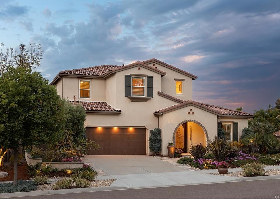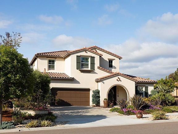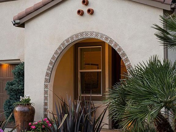 Immaculately designed residence situated on an expanded corner lot with downstairs bedroom and full bath. Hickory hardwood floors, custom front door with designer glass. Great-room gourmet kitchen boasts a large center island, slab granite countertops, a suite of GE Monogram stainless steel appliances and accented with a full-height Kinetic khaki blend backsplash. Primary suite offers a lavish bathroom with Tortora tile, a soaking tub, and walk-in shower. Front exterior upgrades: decorative stucco curved walls, expanded driveway with flagstone, a colored concrete walkway to front porch graced with Spanish tile. Rear yard: pergola-covered grilling station with a bar top, landscape lighting, and a diverse variety of mature trees and plants throughout. Also: shutters, custom slider doors, finished garage with epoxy flooring and extra storage. Flexible floorplan can see optional dining area serve as an office with barn door improvements. AC, Low HOA Fees, No Mello-Roos Fees, Solar. Enjoy proximity to premium amenities: restaurants, shops, top-tier schools, and the beach just a quick bike ride away.