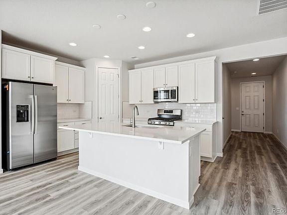 **!!MOVE-IN READY!!** This Amethyst is waiting to impress its residents with the convenience of its ranch-style layout along with designer finishes throughout. The main floor offers two generous bedrooms flanking a shared bath that make perfect accommodations for family or guests. The open layout leads you to the back of the home where a beautiful kitchen awaits and features a quartz center island and stainless steel appliances, including a refrigerator. Beyond, the open dining room flows into the welcoming great room which welcomes you to relax with its contemporary fireplace. The owner's suite is found as well and flaunts a private bath and spacious walk-in closet. **Ask about our special offers. Call 303.850.5757 to schedule a tour today!**