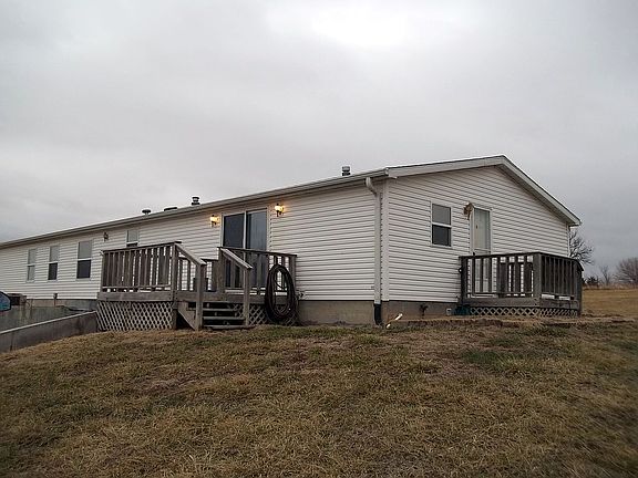 1944 sq. feet finished upstairs. One room downstairs. 4 bedrooms and one room off the master bedroom for a study, nursery or bedroom space. Drive out basement with automatic openers. Nearly new refrigerator, dishwasher, & garbage disposal. Patio doors open to deck. Fenced in pasture. Lots of great trees. Couple storage sheds. Propane tank. Well water. 5 acres more or less. Heavy insulated 6” walls. Vinyl easy wash windows. Central heat and AC. Property sells as is where is. Call 785-456-9980 to see. Leave a message if we are not home & we will call you back.