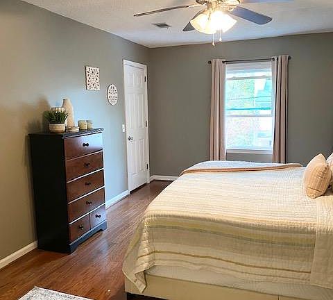 Fully furnished 2 bedroom 2.5 bath home in a very quiet and safe neighborhood. This space is great for traveling professionals, those relocating or a family looking for a good size home. . The home has brand new windows, new flooring, and updated bathrooms. The back yard is shaded and private and is perfect for enjoying time outdoors when the weather is nice. Renter is responsible for all utilities. Owner will manage the upkeep of the yard. If renter needs to break the lease, a 30 day notice will have to be provided and owner will keep the deposit.