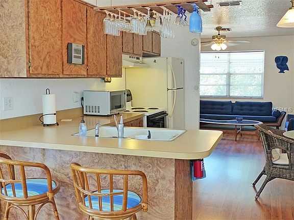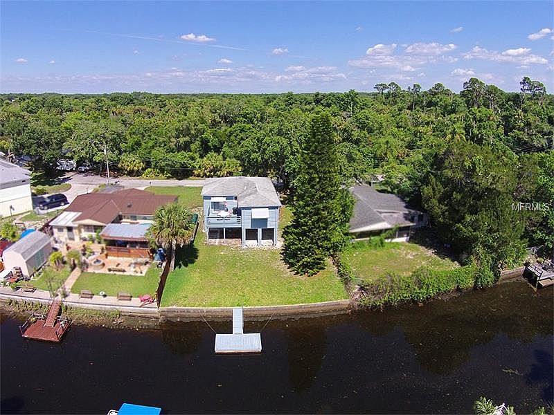 AWC - Taking Backup Offers This charming waterfront home is nestle on the gentle Pithlachascotee, aka, The Cotee River amongst mature oaks which provide shade and an old Florida charm. Enjoy Gulf access from the convenient floating dock while stopping along the many waterfront restaurants who provide free dock service while you enjoy their hospitality! Or perhaps Kayaking is more your speed with miles of winding, scenic water trails. Enjoy ease of mind and wallet from having an elevated home which provides very inexpensive flood insurance and underneath parking and storage! As you enter this cozy home you will immediately appreciate the quality wood laminate flooring that flows through the entire home. The spacious Living Room has an abundance of natural light speckled by the droplets of sunlight dancing through the large oak tree's leaves in the front yard. The gracious Kitchen has a plenty of cabinet space and quality appliances and offers a convenient Breakfast Bar which serves into the Family Room offering a wonderful view of the waterfront. Double sliders lead out to a large balcony which enjoys sunshine and its own vista of the waterfront. Both Bedrooms are generous and include ample closet space with the rear Bedroom offering private access to balcony and view of the water. Both Bedrooms are served by a full Bathroom which has been updated with a designer wood vanity and beautiful tile flooring. Close to everything yet tucked away in its own slice of paradise. Make an appointment to see this charming home today!