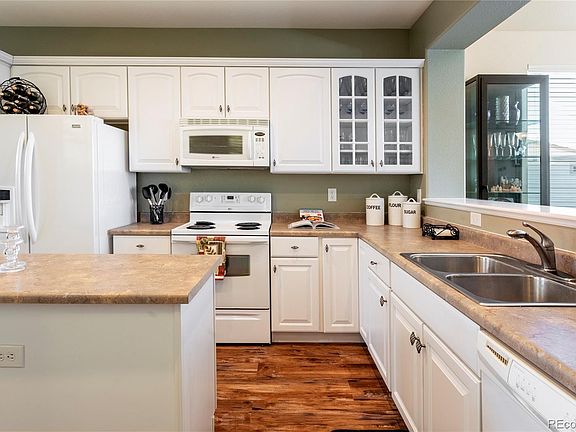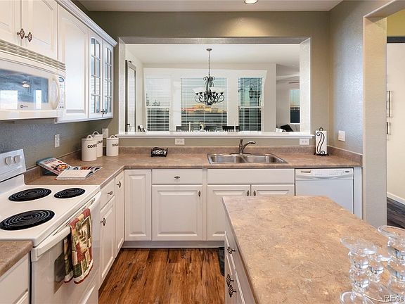 Welcome Home, to this charming 3 bed, 3 bath with loft, 2 story home in the desirable Hearth neighborhood. This home sits at the top of the hill in the corner, giving you an extra spacious backyard and amazing mountain views from the second floor. Walk into the house to a brand-new floors and baseboards throughout the first level. The kitchen comes with all the appliances, breakfast nook and island. The kitchen is plumbed for gas and the back patio has a gas connection for your gas grill. The dining room is set for 8 but could fit up to 12 with the extra leaf and chairs. The living room is wired for surround sound and an alcove for your tv and gaming devices, which wont distract you from the warm gas fireplace. Retreat upstairs to find the large loft that can be converted to a 4th bedroom, or keep it for games, movie night or just relaxing. The primary bedroom has a coffered ceiling, ceiling fan, dual walk-in closets, 5-piece bathroom and a ton of natural light. The laundry hook up is behind closed doors in the hallway along with more storage cabinets (like a butler pantry but better). The southwest facing bedrooms are stunning, and one has a walk-in closet. The unfinished basement is plumbed for another bathroom and set for another bedroom and family room area. New AC and Furnance, exterior of house was painted in 2016 and backyard fence was recently painted. Original owner. Walking distance to Rock Canyon, Rocky Heights, Southridge Rec Center & miles of walking trails. Easy access to the mountains, I-470 and I-25, DTC & Park Meadows. Come check this beauty out…