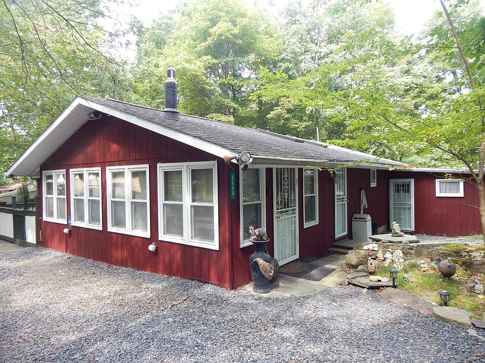 RENOVATED HOME AWAITING JUST FOR YOU! OVER 700 SQ. FT. OF DECKING! PLUS FENCED IN AREA FOR YOUR DOG! FEATURES INCLUDE RECESSED LIGHTING, FOUR ( 4 ) SKYLIGHTS, BRICK FIREPLACE, STAINLESS STEEL APPLIANCES PLUS ATTIC STORAGE! THIS HOME HAS BEEN TOTALLY RENOVATED - NEWER FLOORS - WOOD CEILING IN FINISHED PORCH AREA - FENCED IN AREA FOR DOGS - LOOK AT THE PICTURES! SERENITY AWAITS IN THE POCONOS AT THIS PROPERTY FEATURING TRANQUILITY.
