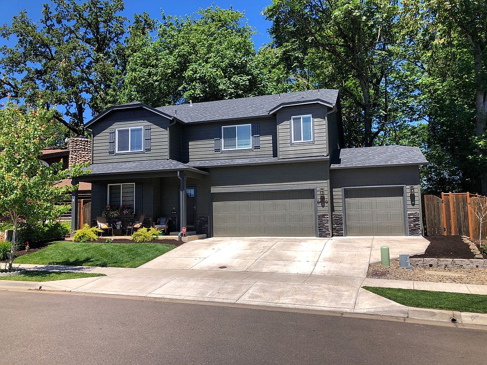 Absolutely gorgeous newly built home nestled in a desirable family friendly Thurston neighborhood. This home has 4 bedrooms with an office or 5th bedroom on the main level, 2.5 bathrooms, and a 3 car garage. Upgraded amenities include wood laminate floors throughout, large kitchen with quartz countertops, stainless steel appliances including double oven range, pantry, great room with gas fireplace, spacious master suite with soaking tub, and a fully fenced private backyard with a covered deck.