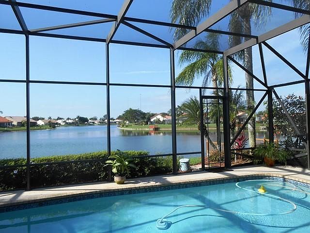 Wow! Foyer leads to the gorgeous pool & wide open lakeview beyond .. updated w/ newer kitchen, granite & appls, spacious tiled great room, split bdrm plan plus den/3rd room. Has it all but what you don't readily see is even better: new tile roof 2010, impact windows & approved doors, upgraded insulation, new exterior walls, reinforced pool screen encl, new a/c 2008 .. see supplement for more details. HOA covers the gate, indiv lawn care & trimming, exterior house painting every 7 yrs, cable & internet pkg + LOS playground, tennis, shuffleboard & more. Slips avail at common dock or build your own to meander the miles of waterways in your electric or paddle boat. Mins to shopping, Wellington Polo & retail plus a desirable top rated school system. See Addenda, info & measures approx...
