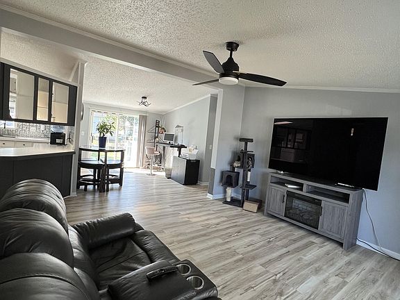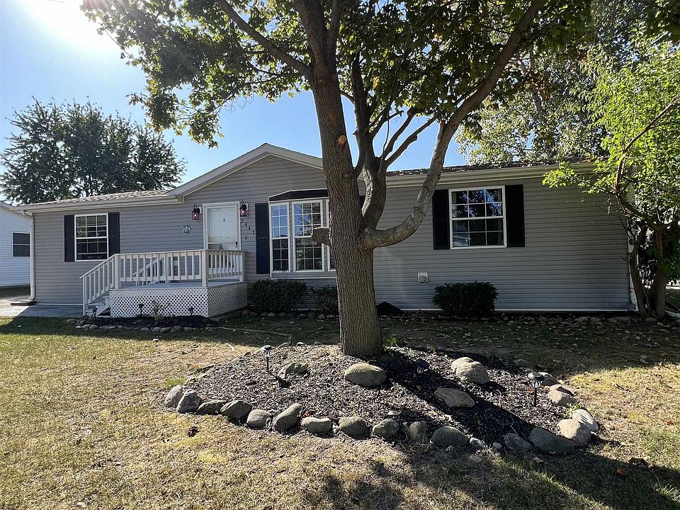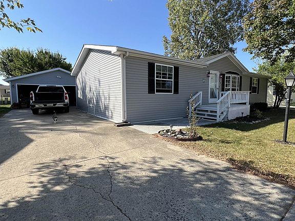 Beautifully Updated Open-Concept Mobile Home! This stunning 3-bedroom, 2-bath home is move-in ready and packed with upgrades! Step inside to discover a spacious open-concept layout with cathedral ceilings, newer vinyl flooring throughout, and fresh paint. The updated kitchen and remodeled bathrooms add a modern touch, while the master suite offers a private retreat complete with a luxurious jetted tub and walk-in shower. Enjoy peace of mind with recent improvements, including a new roof and siding (June 2025), plus a newer furnace and central air for year-round comfort. Outside, you'll find a beautifully fenced yard, a large cement patio—perfect for entertaining—and a 2-car detached garage with an expansive concrete driveway. Don’t miss this opportunity to own a beautifully maintained and stylish home with all the extras!