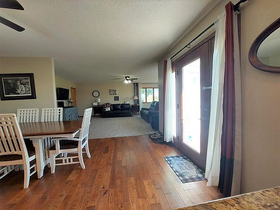 Beautiful home and shop on +/- 4 acres on a paved road! Tons of natural light with tinted windows in the south part of the house. Open concept kitchen, dining and front living room. Upstairs is one large room with a full bath. Rooms are spacious! Front bedroom (approx. 12x24) currently has a temporary wall (can be removed) splitting the large room into 2 bedrooms. Several improvements made by current owners, including but not limited to new floor coverings, paint and landscaping. Partially insulated shop with separate room (electric, concrete floor, propane wall heaters, etc.) Insulated dog shed with electric. Must have preapproval to tour. More photos coming soon! Agent owned. Call today for a showing!