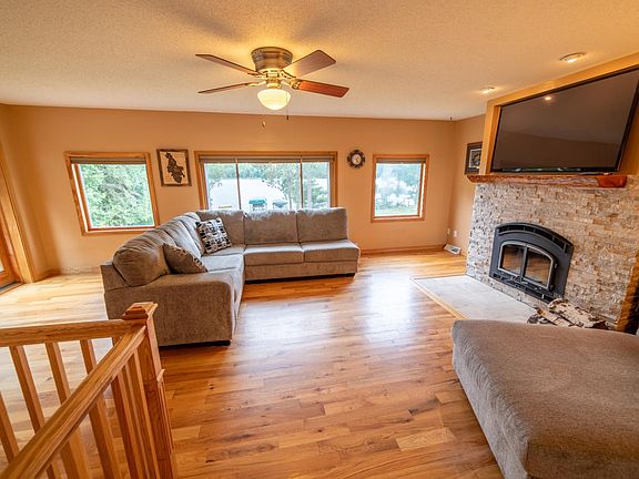 Blacktop drivewayWonderful lake viewsAttractive kitchenPleasant landscapingDesirable lake juliaSolid surface countertopsReal hardwood floor