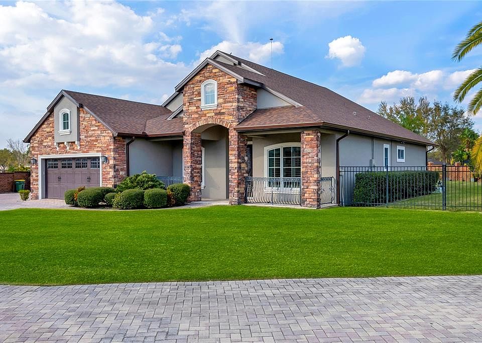 This is a stunning ½ Acre, custom-built home in the gated community of Pearl’s Landing on Lake Conway, in Belle Isle. Featuring a unique lakefront access and a plethora of luxurious upgrades. With only 4 homes, and No HOA in the community, this house boasts 3 bedrooms, an office, formal dining, a great room, and a chef's dream kitchen with high-end appliances and ample storage. The master suite is a retreat with wood-look tile, a luxurious bath, and a large walk-in closet. The other bedrooms are also generously sized, one even having an ensuite bathroom. The great room is spacious and perfect for entertaining, with french doors leading to the covered lanai and a huge fenced backyard with a recently-built saltwater pool (2021). The house is packed with upgrades, including foam insulation and block walls, fenced yard, double pane Anderson windows, a whole house generator, 4 zoned AC, wood floors, crown molding, recessed lighting, speakers, central vac system, New Roof 2022 , New Water Heater 2022, 10’ Ceilings, and more. The unique lakefront features approximately 150' of lakefront with a partial seawall and a partial sandy area, and there's even a private brick pathway leading to your point on the lake, with plenty of room to add a boat dock. This gated enclave is a hidden gem where neighbors look out for each other, and the community also provides a boat ramp just six houses away for access. Overall, this home is a true gem, with every detail carefully thought out and designed to perfection, making it a must-see for anyone looking for their dream home in a secluded and peaceful setting.