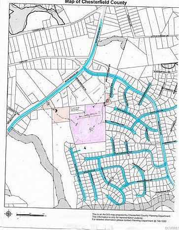 20 acres located behind Irongate Village Shopping Center. Zoned Agricultural. Chesterfield county would like to see mixed use, offices and residential. Access the property from Misty Hill Road.