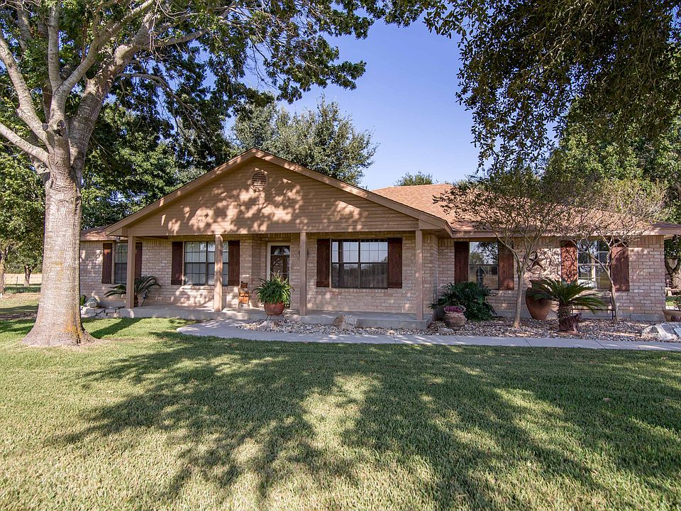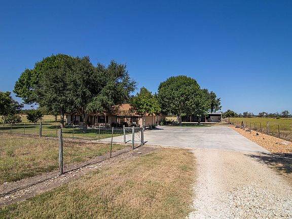 Beautiful 4 bedroom custom brick home in Marion ISD!! Nestled on 8+ acres planted in Tifton 85 and ag-exempt! Relax on the flagstone patio listening to the waterfall from the Stunning Keith Zars Pool. Granite countertops and neutral colors will make you feel right at home on this wonderfully maintained property. The master suite is very spacious with lovely tray ceilings and a tasteful ensuite. Plenty of room for animals with a 40x60 Pole barn that includes a workshop and numerous sheds in great condition.