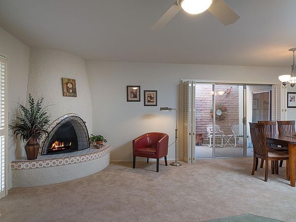 For more information on this property, contact the Listing Agent, Lori Mares at (520) 918-5808 or LMares@LongRealty.com. Incredible views of the city & mountains across a wide open greenbelt is all you need to fall in love with this light & airy 2 bedroom. Living space offers a large living room w/ a lovely kiva fireplace & a generous dining area. Kitchen has solid surface counter tops, plenty of cabinet space. Master bedroom has a large walk in closet, access to back patio & step in shower. Outside, enjoy views from both the front & back of this home! The L-shaped patio offers plenty in outdoor living & entertaining options, coupled w/ great privacy. Conveniently located within walking distance to grocery, restaurants, drug stores, hardware store & banks. HOA offers a pool, spa, 2 tennis court... Sit back, relax & Welcome Home