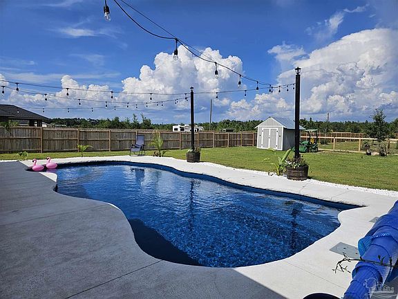 UNDER CONTRACT Ultimate pool home in East Milton is distinguished and sophisticated and is ready for a new family. This stunning 4/2 Craftsman is a split floor plan with a 2 car side entry garage situated on 1.02 acres. The back yard is an oasis that features a sparkling pool, an outdoor cooking and entertaining area that includes a wall mounted TV, as well as an expanse of green space that can host anything from yard parties to home-style sporting events. Delight in the space afforded by the over 1-acre yard. There is an additional structure out back to house lawn equipment leaving the garage open for housing your vehicles. The home itself is stylish and its layout is suited to encourage "family time"! The kitchen has upgraded granite countertops. The owner upgraded the appliances, which include an LG stainless steel slide in range, microwave, LG French door refrigerator w/ 2 drawers and dishwasher. ALL stay to be enjoyed by the next family. The kitchen has a large walk in pantry to accommodate all those tantalizing treats that children love. A beautiful breakfast nook overlooks the amazing backyard. The kitchen boasts a large center island that overlooks the living area. The laundry room is private and the Whirlpool washer and dryer stay. Nothing like saving money by not having to buy ANY appliances! The main living area and 1 bedroom (or home office) has Core-tec Pro Plus Luxury Vinyl Tile and carpet provides a plush environment in the master and two of the guest bedrooms. Master bath has a separate shower, garden tub, double vanities with granite countertops and 2 walk-in closets. There's a sprinkler system on approx 1/2 of the yard, garage door opener and so much more that is a part of this property. There is plenty of room for pets, children, a garden - you name it! Possibilities are endless. This home is conveniently located near I-10, Pensacola, shopping and military bases, all while being nestled in a charming, pastoral setting.