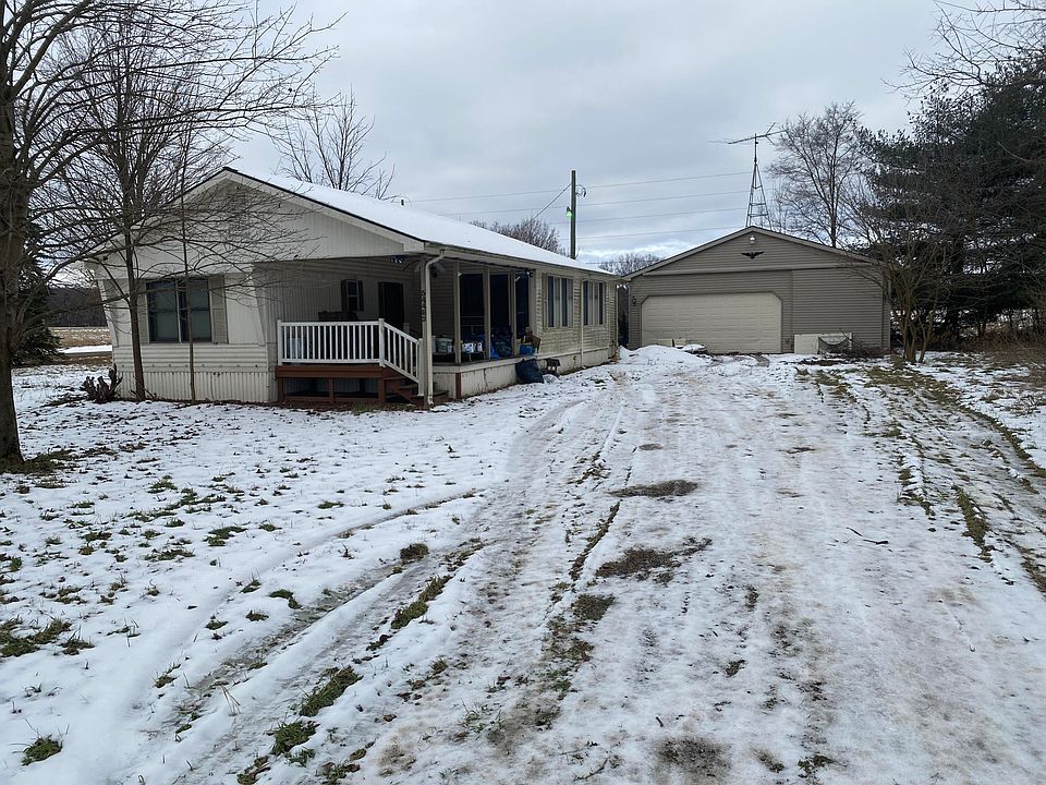 Beautiful country setting. 3 bedrooms, 1 1/2 baths. There have been many updates through the years. The home features a large addition, vaulted ceilings, lots of closet and storage space. 30X 42 garage/outbuilding, large concrete pad for parking. With a little TLC this could be a wonderful home. The home has an affidavit and has been permanently affixed. Being sold ''as is''.