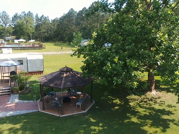 Don't let the tax record fool you - this is a 3/2 full brick home on 1 acre. (original single wide MH has been removed). Lot backs up to woods and lot is very private on a dead-end road. Both baths have both showers and separate tubs. Roof less than 1 year old. Large covered deck on back of home with a separate covered grilling area. Gazebo on concrete pad with a firepit that stays. 30' x 30' detached metal garage with concrete floor. Very convenient to Airport and River City Market Place. Metal shed by back deck has electric, window AC and water.