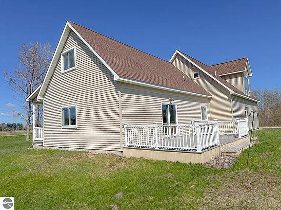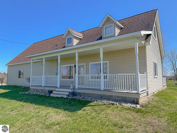 Check out this wonderful home on just over 4 acres with a pond. You'll love the huge yard, covered porch, gazebo, and back deck for tons of outdoor enjoyment. The open floor plan creates a spacious living area on the main floor while the uniquely designed upper level can be accessed from either end of the home and offers 3 bedrooms along with a beautifully updated bathroom with double sinks, a tiled shower, and a garden tub. The finished attached garage provides ample storage for vehicles and has a mechanical/storage room built in. To top it off there is an additional 24x24 pole barn. All of this is conveniently located on a paved road between Beaverton and Clare, 7 miles North of US-10.