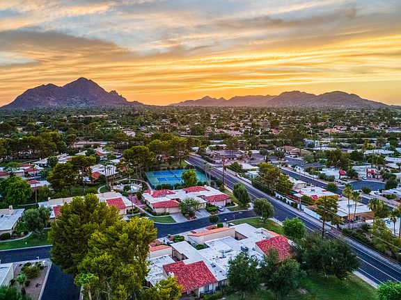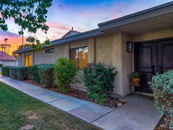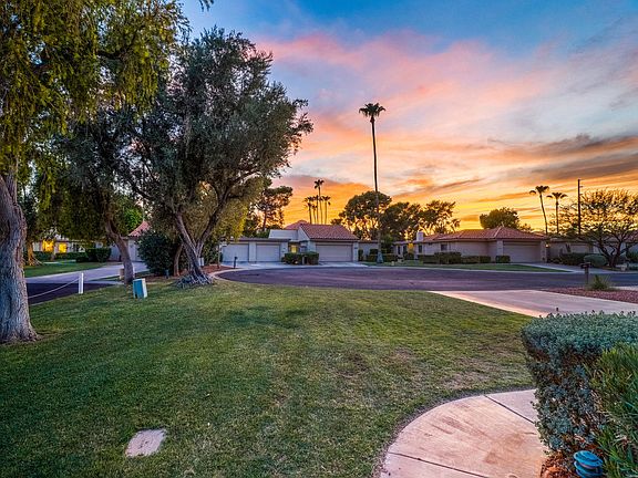 LOCATED IN THE POPULAR SUNRISE VILLAS COMMUNITY! Unique patio home situated off a quiet cul-de-sac in a park like setting. This is a hard to find end unit with a private entry. Adjacent to community greenbelt with expansive grass areas, multiple walking paths, palm trees, mature desert pines and olive trees. Bright and open floorplan with great room and high ceiling. Updated kitchen with breakfast nook and views to the patio. Spacious master bedroom with plenty of windows. Large patio with afternoon shade. This neighborhood features 4 resort style pools, hot tubs and tennis courts. Perfectly located close to the popular Scottsdale entertainment and restaurant venues. Enjoy easy access to the Indian Bend wash trail system and the Scottsdale canal. A very unique property!