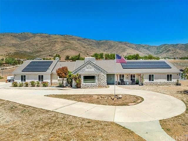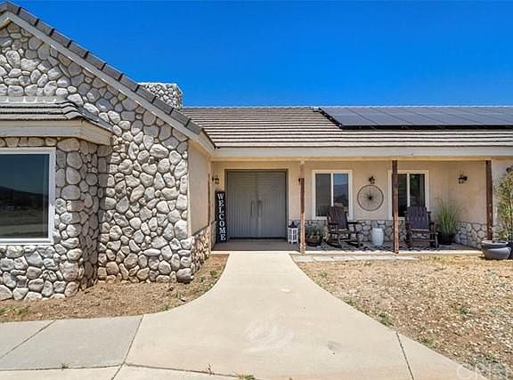 Wonderful single story pool home with amazing views that is updated and turnkey. From the moment you drive up to the circular driveway you will fall in love with this property. The entry foyer has a custom-built shoe and coat storage. The living/game room takes advantage of the views the property offers and has cozy wood burning fireplace. The spacious kitchen is bright and open to the large family room. It has stainless steel appliances and a large sit-down breakfast bar. The family room has another fireplace and floating shelves perfect for at home movie night. The spacious primary bedroom has French doors leading to the back. The recently updated primary bath has a separate shower and tub with a hanging chandelier. The home has two additional bedrooms plus a den/exercise room that also offers mountain and valley views. The laundry room has lots of space for storage, plus the ability to add a separate sink. The garage has been converted to a fully insulated bonus room with it its own air conditioning and heating. There is a third bathroom next to the bonus room that is wheelchair accessible. The home has plenty of great updates including owned solar, newer windows and patio doors, newer paint, flooring and so much more. The almost 5 acres of land are mostly flat and impressive. There is a unique heart shaped pool and spa, firepit, bbq area, sports court, and batting cage. Tremendous amount of space all around to build horse stalls, barns, another structure, or any other needs you might have. This home really has it all. Great for entertaining or just enjoying and making special moments with your family. Make an appointment today to tour this one of kind property.
