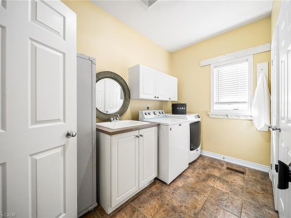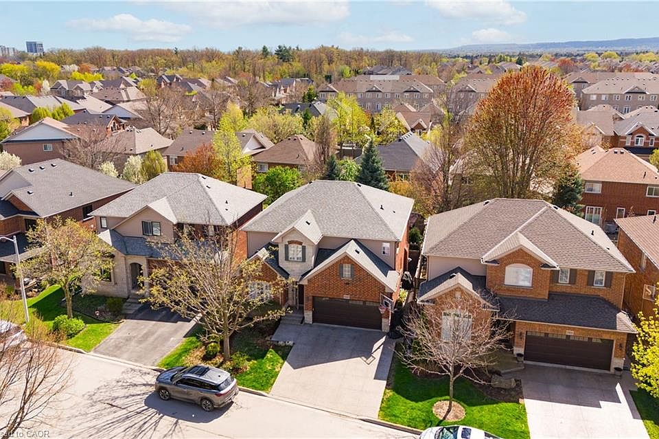 Nestled on a tranquil street in Burlington’s highly coveted Orchard community, this beautifully updated, move-in-ready 4-bed, 3-bath home offers the perfect blend of style, comfort and functionality for modern family living. Boasting exceptional curb appeal, double car garage and welcoming foyer with soaring ceilings, this home impresses from the moment you arrive. Step into a bright & airy open-concept main floor featuring hardwood flooring, neutral tones and elegant finishes throughout. Spacious living and dining areas flow seamlessly into an updated, eat-in kitchen outfitted with quartz countertops, SS appliances, custom cabinetry, a stylish tile backsplash, and a large breakfast island, plus dinette area—ideal for both casual meals and entertaining. The inviting family room, complete with cozy gas fireplace & expansive window, offers serene backyard views and a perfect place to unwind. A separate vaulted-ceiling living room is ideal as formal sitting area, den or home office. Convenient main-floor laundry/mudroom with inside access to the garage. Upstairs, retreat to the primary suite with a large walk-in closet and spa-like ensuite featuring soaker tub & walk-in shower. Three additional generously sized bedrooms and an updated full bathroom provide ample space for family or guests. The fully finished lower level expands your living space with a large recroom, bonus office or gym area and a rough-in for another bathroom for future customization. Step outside to your private, fully fenced backyard with a patio area for summer barbecues. Additional features include resurfaced driveway, owned hot water heater, Roof 2023, A/C 2023, Furnace 2020 and abundant storage throughout. Enjoy all the benefits of living in family-friendly Orchard—just steps from top-rated schools, parks, shopping and amenities. With direct access to Sixteen Mile Creek Trail and nearby Bronte Creek Provincial Park, outdoor enthusiasts will love the endless walking, hiking and biking options.