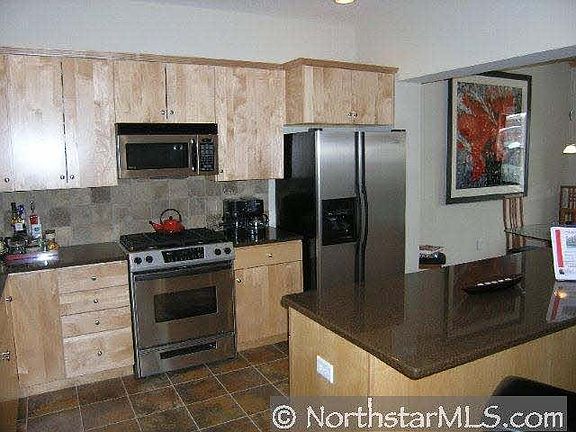 Unique! Enter your own private garage directly across from unit. Best outdoor space dntown! 2 BR, 2 BA, 2 Level TH + 600 sq ft roof top deck. Mill Distict N'hood, Guthrie, MacPhail, Skyway, LRT, River & more! Completely upgraded! Ample windows & storage!