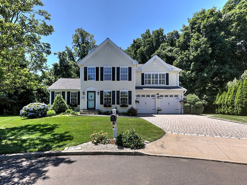 HIGHEST & BEST DUE BY 3PM, TUESDAY 7/23. Nestled at the end of a tranquil cul-de-sac in the coveted Lexington Green Community, this 1,815 square foot Colonial invites you into a storybook setting of comfort and modern elegance. As you approach, a paver driveway and walkway guide you to the inviting entrance, where you're greeted by a meticulously landscaped yard. Step inside to discover the beautiful millwork throughout the home. An inviting remodeled kitchen is both a chef's dream and a gathering place, featuring refaced cabinets, granite counters, a porcelain tile backsplash, stainless steel appliances, undermounted lighting, and a dining area. The adjacent dining room boasts built-in hutches and cabinets, ideal for displaying treasured china or collectibles. The living spaces flow seamlessly, offering a serene three-season porch overlooking a private backyard that abuts a wooded area, creating a peaceful retreat for morning coffee or evening relaxation. The backyard oasis is further enhanced by an underground sprinkler system, ensuring lush greenery year-round, and solar panels and a generator provide energy efficiency and peace of mind. Upstairs, three spacious bedrooms offer comfort and privacy, with remodeled bathrooms featuring exquisite details such as new vanities, and beautiful tile work. The laundry area is thoughtfully designed with a folding table and cabinets for added convenience. Downstairs, the finished lower level presents endless possibilities with a recreation/play room for entertainment, a full bath for added convenience, an office space ideal for remote work, and ample storage for all your needs. This home offers easy access to the train, highways, beaches, parks, shopping, and restaurants, making every day a blend of comfort and convenience. With its elegant updates, serene surroundings, and thoughtful touches throughout, this Colonial in Lexington Green is ready to welcome you home.