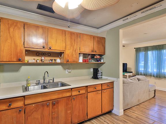 Charming and conveniently located home is nestled in the heart of South Daytona! This home has a new roof, new flooring, new air conditioner and fresh interior/ exterior paint! The windows have been replaced with double pane windows and the bathroom has been upgraded! New bathtub and wall tiles, new light fixtures and a new vanity! The woodburning fireplace sets the atmosphere in your living room which is complete with a dining area! There is a separate, large family room off the kitchen! There is a two vehicle carport with an enclosed laundry room and large workshop or storage room. The fence features a 12' gate to enclose trailers or other items for safe storage near your carport. The 200 amp electric panel is upgraded! New outlet covers and vent covers! This is the home for you!