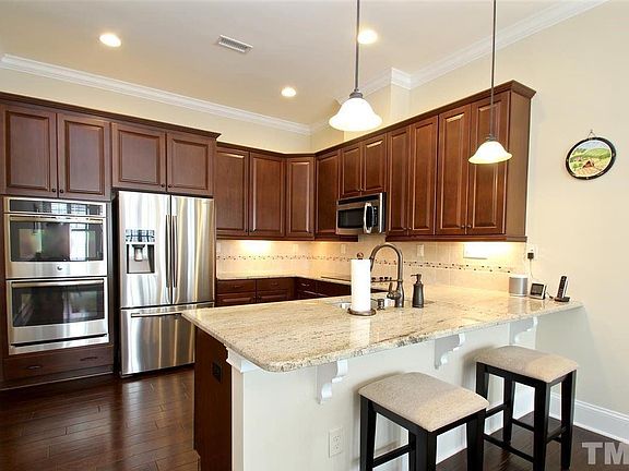 Immaculate END UNIT town-home in highly desired Amberly, with amazing amenities. Hard to find first floor master, 10 ft ceilings on 1st floor, 9 ft on second, 2 ft bum-pout in dining and living. Fans in all rooms. Gourmet kitchen with stainless appliances, gas cook-top, double wall oven and granite counters with tile backslash.Hardwood floors in main living, down molding. Covered porch and rear entry 2 car garage. Walk-ability to pool, clubhouse, local shops, trails! No furniture.