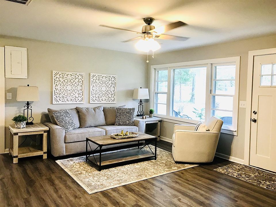Total Charm & Recently Renovated! New HVAC. New Laminate Flooring & Carpet Throughout. New lighting, Plumbing Fixtures, Cabinets & Granite Countertops. Metal Roof. Open Floor Plan. Large Outbuilding w/ Shelving for Storage/ Workshop. Relax & Enjoy Beautiful Views & Total Privacy on the Covered Front & Back Porches. SS Side-by-Side Frig, Washer & Dryer Included. Seller is building a 2,900 sq ft home on the adjoining 5 acre tract. Tell your family & make it a family compound! Ask for details.