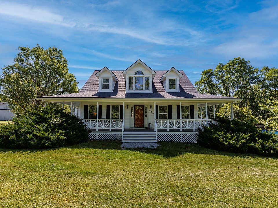 Lovely country home with first floor primary, lovely eat in kitchen, formal dining, and large family room. Spanning the frint of house is acovered front porch just perfect for rocking. Property has4.83 acres to roam. The detached metal barn with two horse stalls, built in 2013. Above ground pool with decking.
