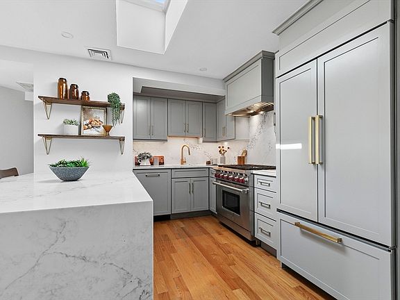 Introducing this simply stunning top-floor corner residence that truly embodies modern urban living. The brilliantly conceived single-level layout maximizes every square foot with 15 windows, a skylight + beautiful southern exposure that floods the space with natural light. The remodeled kitchen is a culinary dream, featuring a high-end Subzero & Wolf appliances, custom-built cabinetry and premium quartz countertops with matching backsplash and accent lighting. This flexible space easily adapts to your lifestyle whether as a 4-bed, 3-bed with formal dining, or 2-bed with an office/den. Modern conveniences such as central A/C, in-unit laundry and private storage elevate your living experience. Nestled in the vibrant East Cambridge neighborhood between both the Red and Green Line, this home offers unparalleled access to Boston, Kendall Sq., Cambridge Crossing, Inman Square, Union Sq. and surrounded by trendy restaurants, cafes, bars, boutique shopping and essential conveniences.