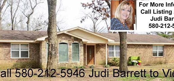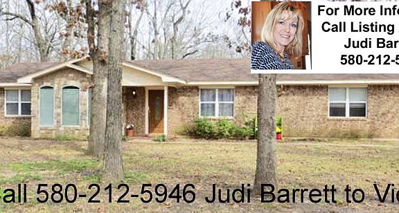 Call 580-212-5946 to get more information or to set up a showing OR check the checkbox next to Judi Barrett on the list of agents to send me an email Home is approximately 1656 sq ft. 3 Bed 1 3/4 Bath. Large open Living Room/Dining Room. Open floor plan with updated flooring, crown molding, new paint, newer windows, newer cabinets, flooring, etc.. Great floor plan. Sliding Door opens onto back patio overlooking creek. 2 Acres includes creek and shop. Brick and Stone, large old growth trees. Brown Addition east of Idabel. Brokered And Advertised By: Integrity Real Estate Services Listing Agent: Integrity Real Estate Services