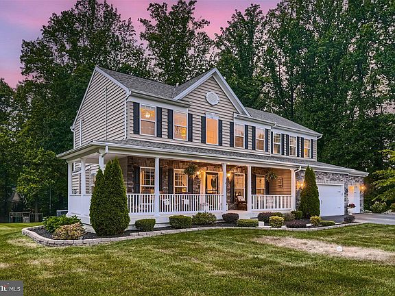 Exquisite 4BR/3.5BA expansive Colonial on a sprawling lot in Forest Hill. Park in front of a three-car garage, make your way past beautiful landscaping, and step up onto the wrap around porch of your forever home. Step into a bright airy interior featuring luxury vinyl flooring throughout and an entry offering a view of the second floor landing. On either side of the entry, columns flank the openings into a formal dining room featuring chair railings, and a home office with custom built-in cabinetry and shelving. Step through into a large family room boasting a gas fireplace with a stone hearth and wood mantel. Move through into the amazing open concept kitchen and breakfast room. The kitchen offers plenty of cabinets, a separate pantry closet, stainless steel appliances, granite countertops with a complimenting backsplash, a center island, and a peninsula that overlooks the breakfast room with a stainless sink and seating. Just past the kitchen is a half bath, laundry room, and access to the garages. The open staircase leads to a grand primary suite with a vaulted ceiling, walk-in closet, and ensuite with a double sink vanity, soaking tub, and walk-in shower. Three spacious bedrooms and a full bath with a double sink vanity completes this floor. The lower level offers additional living space featuring a child's playroom with custom cabinetry and barn doors, a den with built-in shelving, shiplap wall designs, an area for a gym/gaming, a full bath with walk-in shower, and a walk out to the amazing yard. From the breakfast room, french doors open to an oversized Trex deck with steps to a paved patio featuring a stone wall, all overlooking an abundance of green space in the tree-lined yard. A firepit area ideal for gathering with friends and family, a playground area, and shed completes the yard space. This home is move-in ready with dual zone heating and air and solar panels that are fully paid off and so much to offer new homeowners. Imagine all this and in close proximity to shopping, restaurants, and commuter routes.