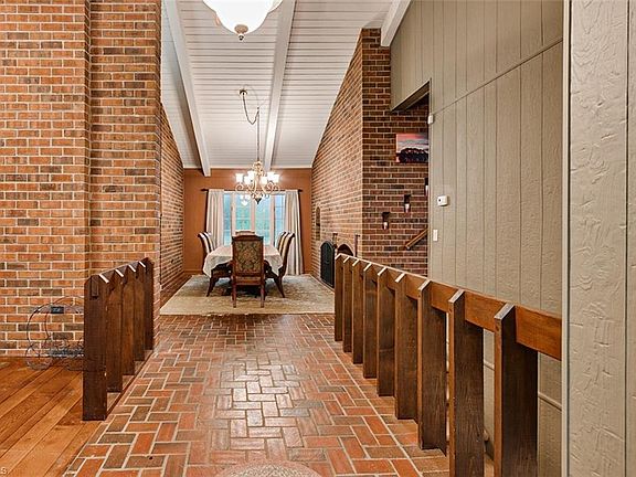 Rare Find! This home has so many custom features that have outlasted the years. Beautiful vaulted tongue and groove ceilings with beams, 4 Fireplaces, brick flooring in foyer, expansive great room includes rock fireplace, built in book cases & balcony. FOUR Bedrooms, 2.5 Baths, DR, Den & kitchen. OFFICE has entry from inside the home and its own private entry from the back of the home. Perfect for those working from home. Unfinished basement with single garage door and wood burning fireplace. Makes a great flex space. Use for parking & storage or use as a rec room. The exterior finish is rock and new vinyl siding so maintenance is minimal. Concrete patio and large flat, private back yard, storage building, circle concrete driveway.