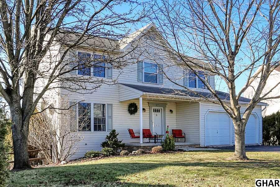 Beautiful two-story four bedroom home with welcoming covered front porch and attached two car garage in Greenwood Hills! Spacious eat-in kitchen with gas cooking, gorgeous tile backsplash and ceramic tile floor that leads to family room with decorative moldings and slider to screened-in deck. Formal living room with ceramic tile floor, hardwood floor in formal dining room, master bedroom with full bath and game room in walkout lower level. Efficient gas heat, 2.5 baths and shed for extra storage.