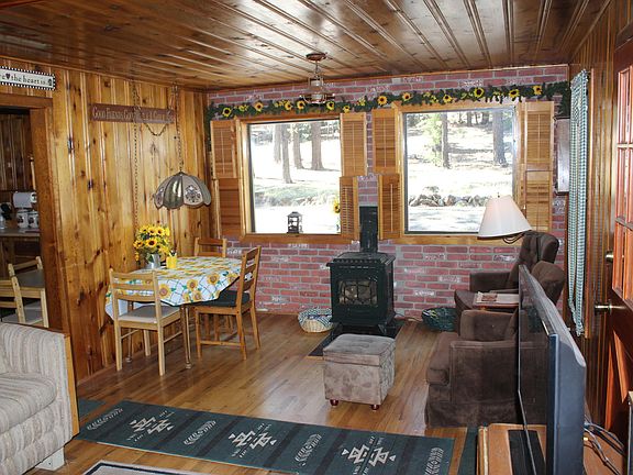 This log cabin has Great Curb Appeal and is one of the early log cabins in Greer. It's a well maintained, cozy cabin that sits on almost 1 1/2 acres. It would be a GREAT NIGHTLY RENTAL for additional income when you're not using the property and has easy year round access . Mature ponderosa pines cover the whole property and wildlife are regular visitors. A 12x20 garage/storage shed behind the cabin is great for all your outdoor furniture, toys and tools . Good property for 2 horses and corrals. Well and sewer installed and plenty of room for a second home.