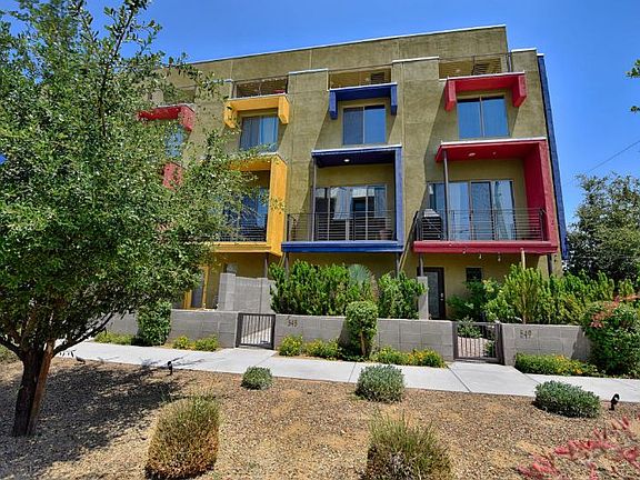 Sleek and modern, a perfect downtown residence for the urbane connoisseur. The ball game, theater, galleries, and top restaurants are all a short stroll away. Move-in ready, this four-level home incorporates a spacious two-car garage, two south-facing balconies with downtown views, three large bedrooms and 3.5 bathrooms (including a dual-vanity en suite master bath and an en suite guest bath). Exposed ductwork and an open main staircase are design highlights. There is ample storage throughout. Luxury designer features include Kohler high-efficiency toilets, Haiku ceiling fan, LED lighting, Nest thermostats, stainless appliances and a water softener. The irrigated front yard was professionally designed and installed; a quiet oasis to sit with your morning coffee as the city comes alive!