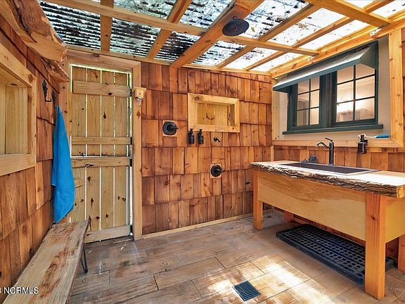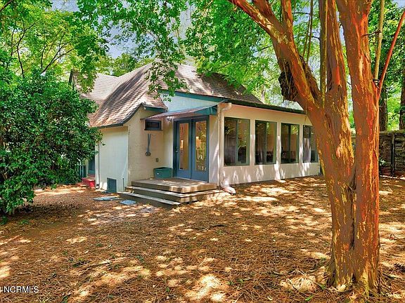 Step into this enchanting 2-bed, 2-bath stucco Tudor cottage with a captivating archway-covered front porch leading to a wooden front door. LOCATION!! 2 MINUTES from Southern Pines GOLF CLUB. 4 MINUTES from Downtown. NO HOA. Separate ''artist studio'' with endless possibilities. Breathtaking OUTDOOR SHOWER with sink in the back! This home has vaulted ceiling and original wood beams with unpainted moldings. Stucco fireplace with gas logs and floor-to-ceiling French doors overlooking side yard. Wood flooring throughout the main level of the home. Carolina Room with brick flooring, lots of natural light and a side porch overlooking the partially fenced in yard. Kitchen has access to the basement, perfect for LOTS of storage or a workshop. Master bathroom features tiled walk-in shower and floors. Plenty of options for a home office, entertainment/flex rooms. This charming home has endless possibilities!