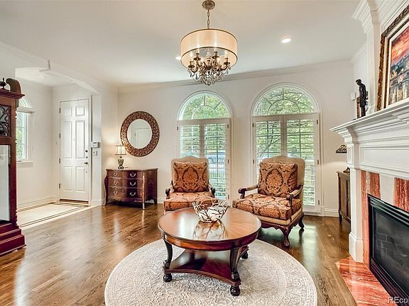 GORGEOUS TOWNHOME ON BEST BLOCK IN CHERRY CREEK NORTH. A must see! Beautifully updated 2-story townhome with gorgeous and tranquil outdoor spaces. Enter through the beautiful gated garden and into this extra wide townhome with high ceilings, custom details and a thoughtful floor plan. Walk into a lovely living and dining room highlighted with a gorgeous wrought iron curved staircase and fireplace. The main level is also appointed with a large family room that has a fireplace, custom built-ins, wine fridge and is open to a chef's kitchen complete with pantry, GE Monogram fridge and Wolf 5 burner gas cooktop. Access the attached oversized 2 car garage with built ins through a convenient mudroom with storage. The tranquil outdoor oasis located off the family room is complete with pergola, TV, gas grill and fan. Upstairs you will find a 2-story, light filled loft area perfect for a home office off the primary suite. The 5 piece primary bath has an adjoining huge custom closet. An additional upstairs bedroom and ensuite bath with its own washer and dryer make a convenient extra suite. The recently remodeled lower level with 9 foot high ceilings has a cozy gathering spot around the fireplace, a gorgeous built-in bar and a large TV area. A third bedroom and bath make the downstairs the perfect retreat. Hardwood floors, plantation shutters, hand troweled walls, skylights, custom built-ins and instant hot water are featured throughout. Walk out your front door and down the quiet tree lined street to Denver's most exclusive shopping and restaurants. No HOA.