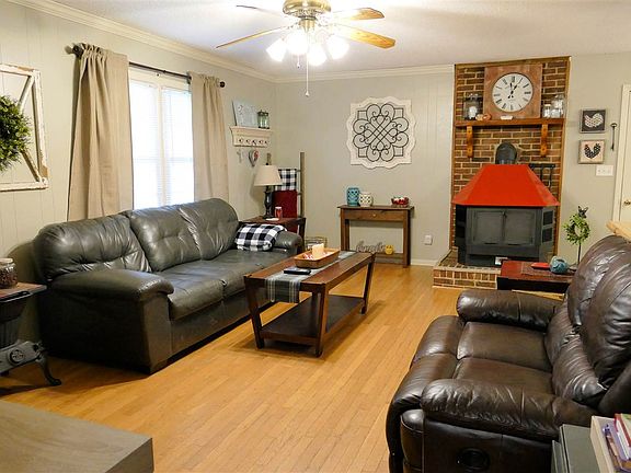 Great location for this mostly brick house in country on 1 acre lot. Very nice home with no carpet! Family room has HW floors and real wood stove fireplace. Large kitchen with tons of cabinets. Includes all appliances (refrig, stove, dishwasher, microwave). All bedrooms with laminate floors. Full bath with tile floors. Flex room with trey ceiling off back could be 4th bedroom, office, dining or playroom. 1-car attached garage with window AC also has storage room. House with vinyl windows, near new HVAC and architectural shingles. Partially fenced backyard, corner lot location. Desirable location only 1/2 mile from Northwest Elementary School.