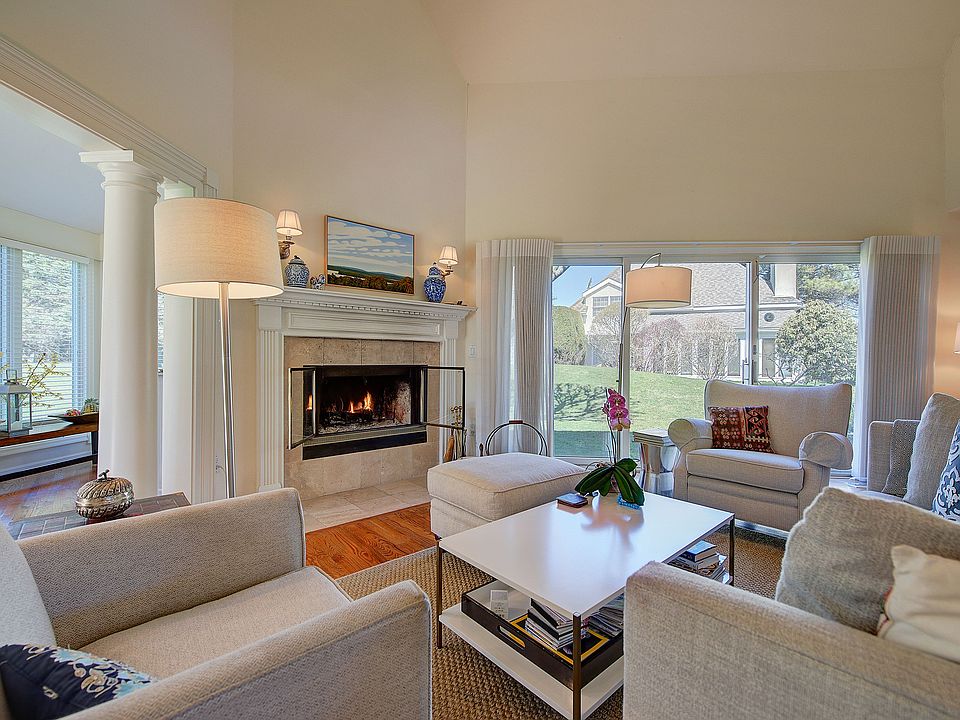 Mint condition 3 bedroom 3 bath condo with 2 first floor ensuite bedrooms plus a third upstairs. Beautiful light and walls of windows in the dining room and living room with fireplace. Sliding glass doors out to blue stone patio for coffee in the morning. Patio is tucked into the lawn and adjacent to high hedges for outdoor privacy. Take a dip in the heated pool after a game of tennis and then bicycle to the village. Close to jitney or the train station.