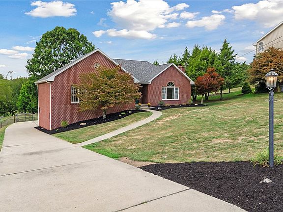 Welcome to this beautiful quality custom designed and low maintenance brick ranch home situated on just over 1 gently sloped acre. New white hardwood oak floors have been installed in all but the bathrooms on the first floor living areas. Level entry into the spacious foyer that opens to the cathedral ceilinged family room with a wood burning fireplace. The light and bright formal dining room with tray ceiling adjoins the family room. Walk into the spacious kitchen with newer stainless appliances, quartz countertops, eat-in-kitchen, large pantry and your main level laundry room. Walk out to your low maintenance composite deck with vinyl railings through the glass doors of your breakfast area. Stairs lead down to the LL stone patio deck with a view of the fenced portion of the back yard. The LL of this lovely home boasts a finished game room and large adjoining storage room (all carpeted and newly steam cleaned). This LL leads into the over-sized 2 car garage. Close to I-70, I-79!