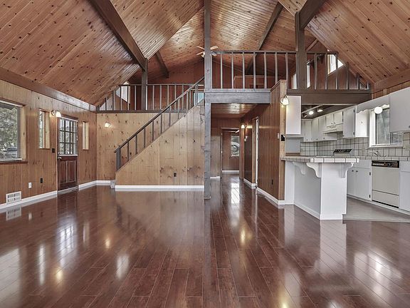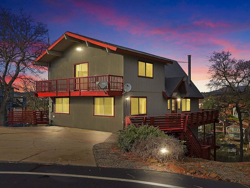 Charming Lake Tulloch Cabin With Lake Views. Three Stories With Huge Master Suite On Bottom Level. New Laminate Flooring Throughout. Open Beam Ceilings With Knotty Pine. Pellet Stove Open And Bright! Wood Lovers Dream! Two Wrap Around Decks With Scenic Views. Community Parks, Private Swim Areas, Private Boat Launch Ramp,BBQ & Recreational Areas, Possible RV-Boat Storage Area. This home is ready for you!