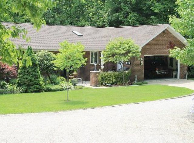 Modern one floor living with finished walkout basement. Zero lot line double. No condo fees. White, granite kitchen, fully applianced. Giant walk-in closet with separate laundry room off the master bedroom. Two fireplaces. Hardwood floors. Balcony deck overlooks woods. Den/study or 3rd bedroom on the main floor. Walkout basement (70% finished) includes rec room, bedroom and full bath. Nice workshop space in the unfinished side. All brick. New roof 2013. Built by Joseph Schrock.