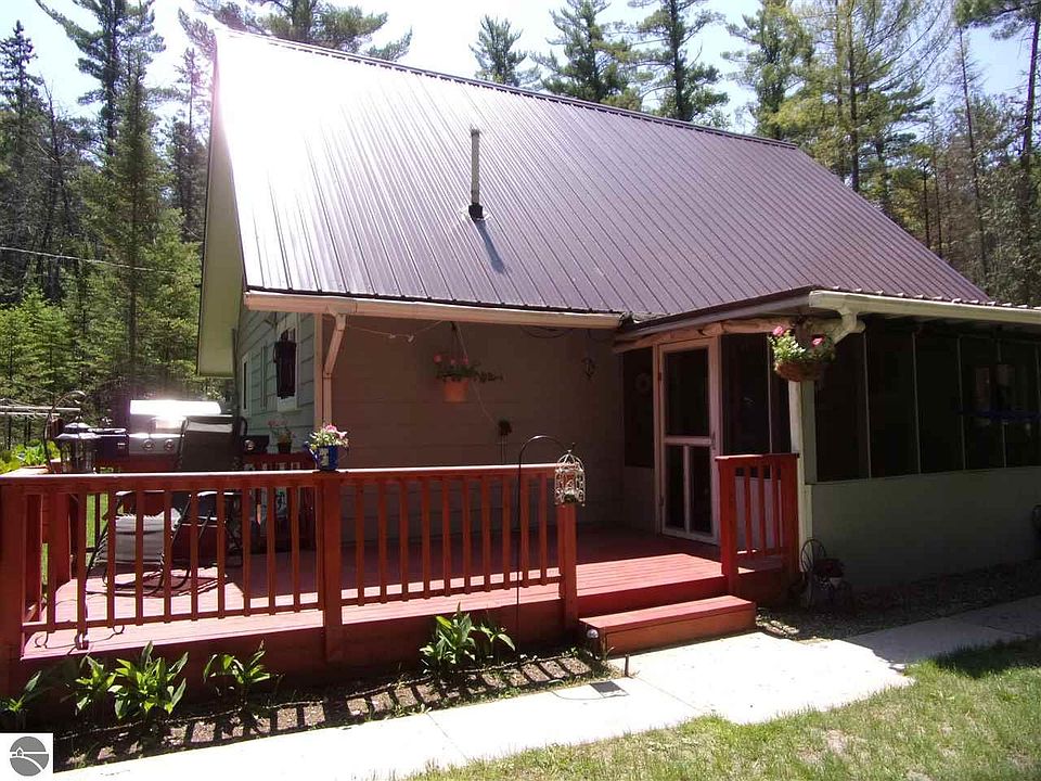 SEMI-SECLUDED CHALET!! Super nice 3 bedroom home on 5 MOSTLY WOODED ACRES with 990+ feet of level water frontage on South Eddy Creek plus a half acre pond stocked with bluegill and perch. Some updates include newer steel roof, well and plumbing. Wood stove in living area for additional heat. main floor master bedroom and so much more!! You will really love the beautiful location of this home!!